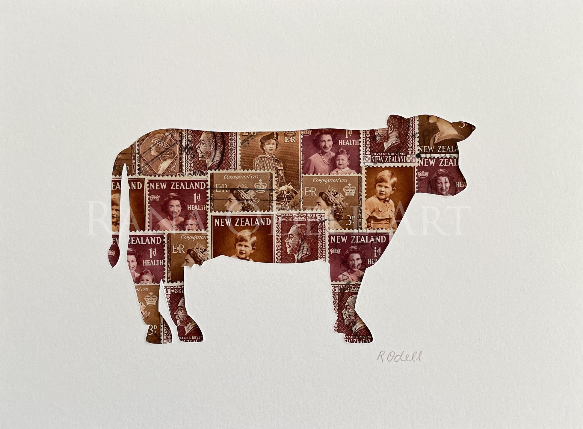 Created from real New Zealand postage stamps issued between 1915 and 1954. Artwork arrives unframed in a cellophane packet with protective backing. Artwork will fit a 6x8 inch frame.