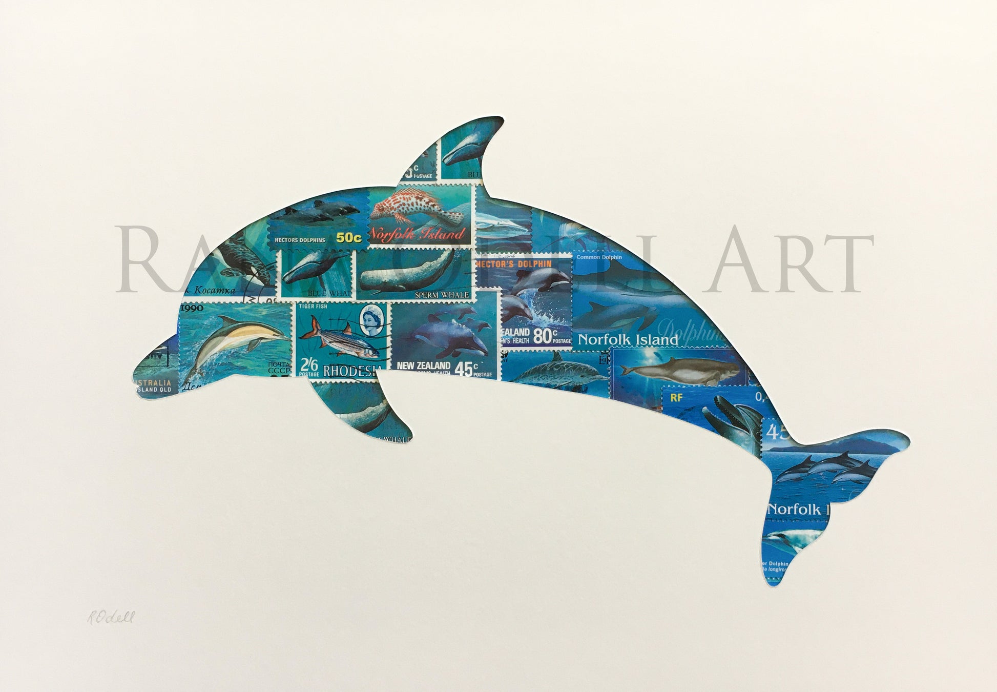 Made entirely from stamps featuring ocean life. This piece was A4 size.