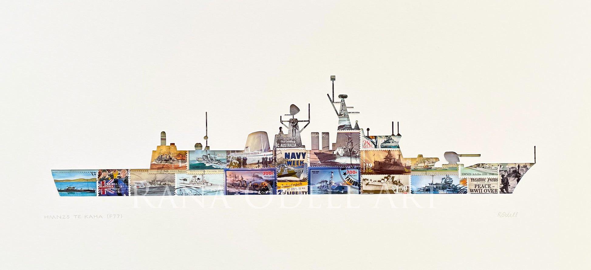 A very special commission made from warship/defence force related postage stamps. This piece was approximately A3 size.