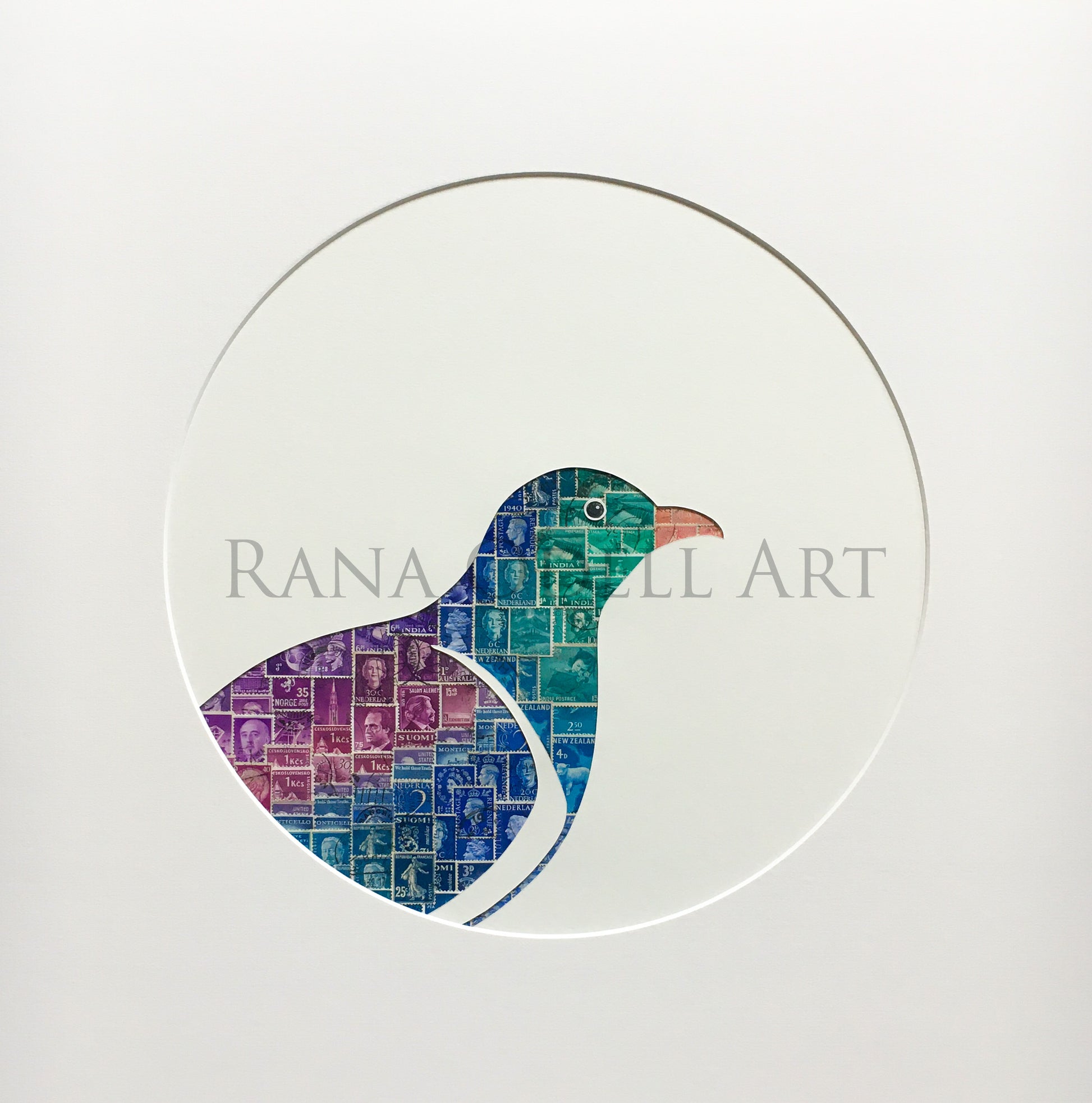 Made from postage stamps from around the world. This piece was 50x50cm.