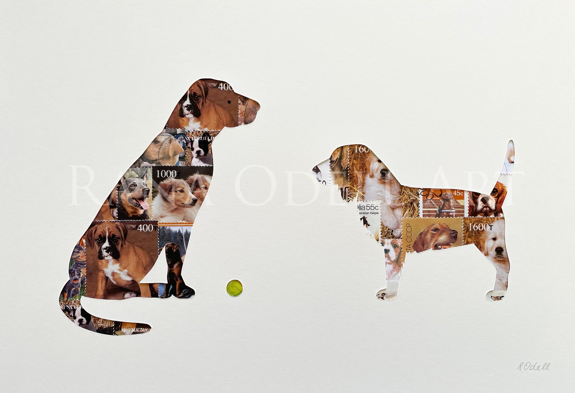A little commissioned ‘pet portrait’ made entirely from stamps featuring dogs. This piece was A4 size.