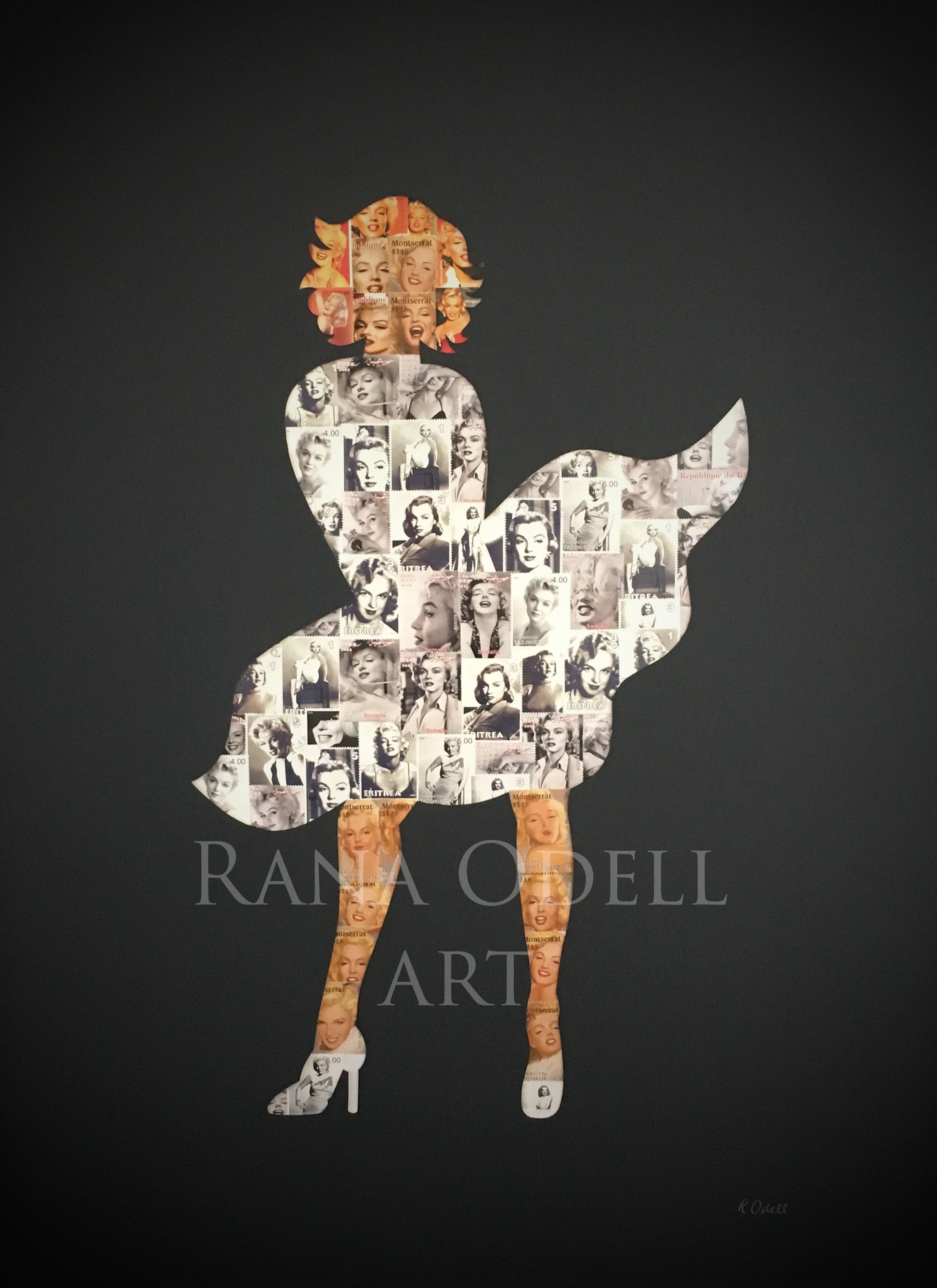 A commissioned artwork made entirely from postage stamps featuring Marilyn Monroe. This piece was 80x60cm.