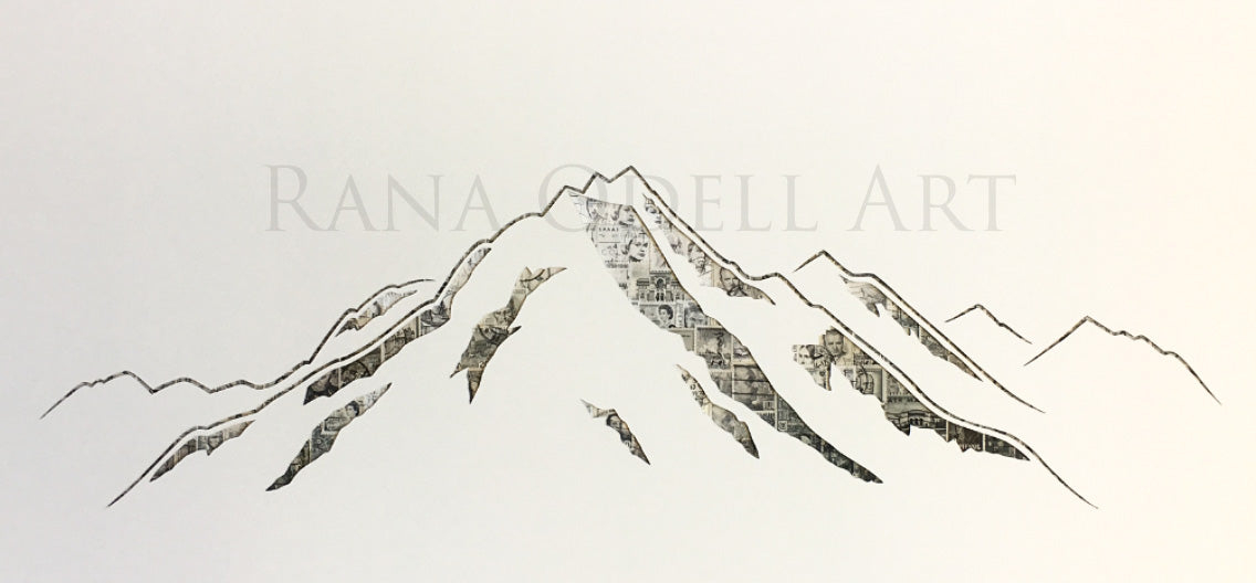 My stamp version of Mt Cook using shades of grey postage stamps from around the world. This piece was 80x50cm. Enquiries welcome.