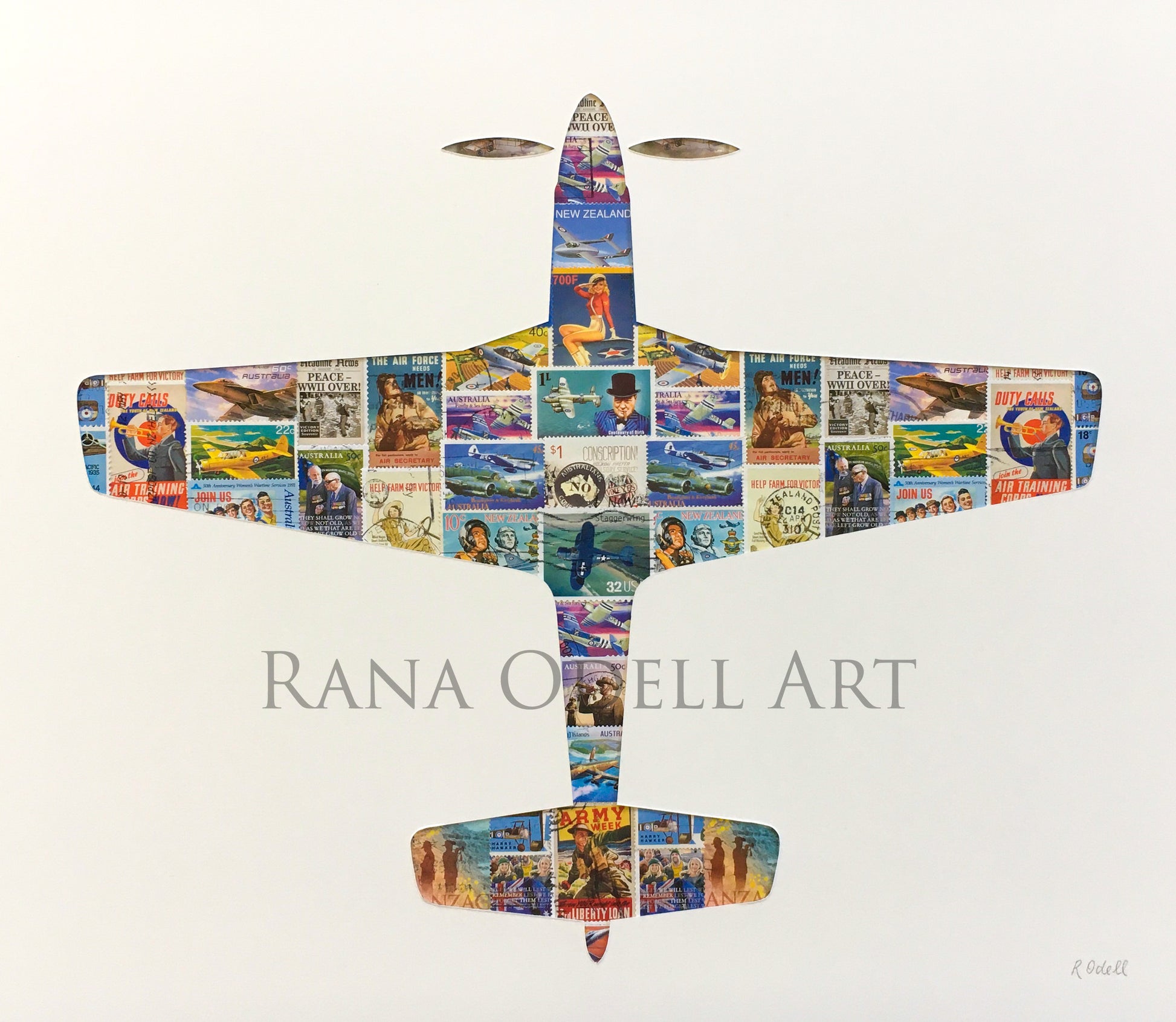 Made from plane/defence force related postage stamps from around the world. This piece was 50x40cm.