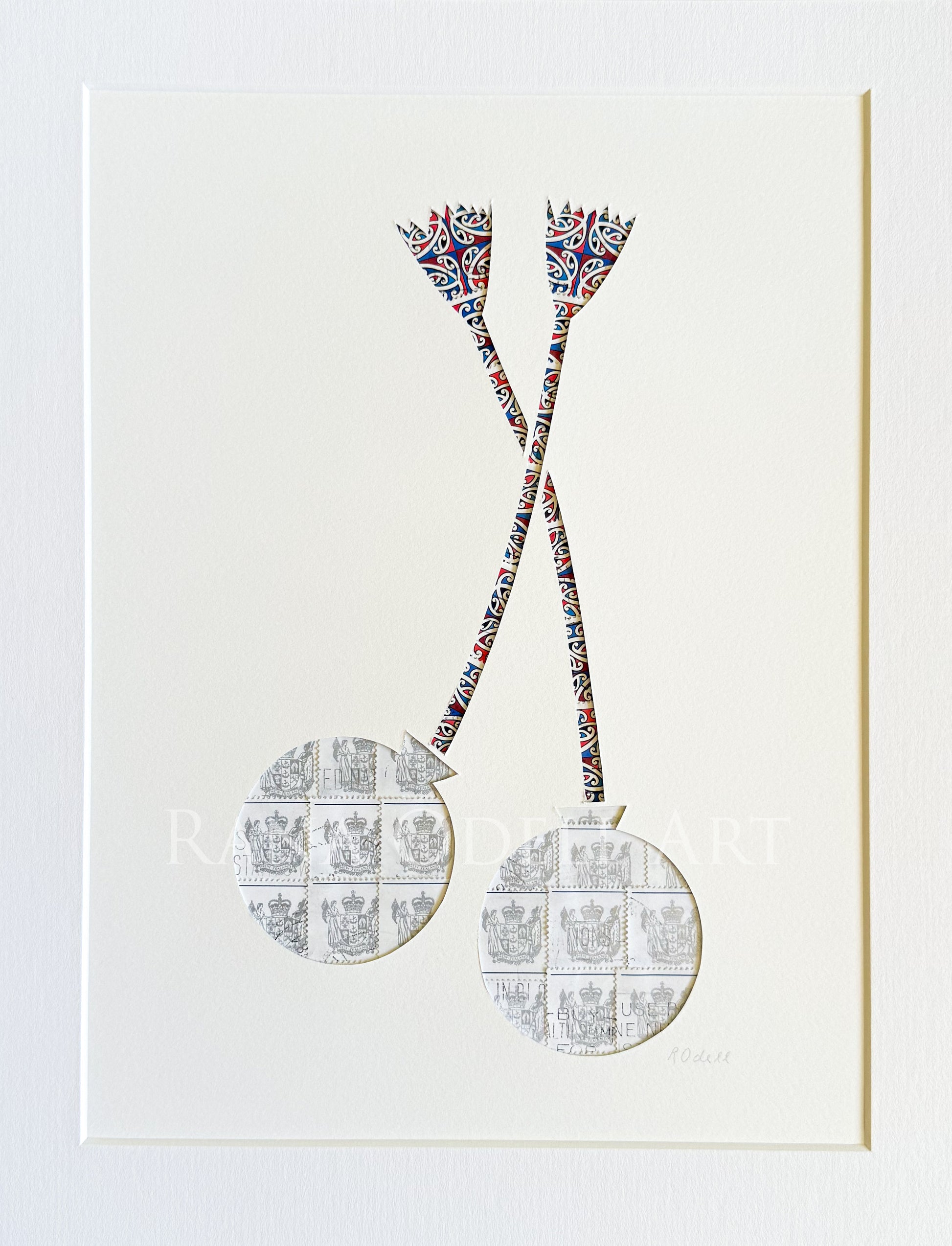 Created from real New Zealand postage stamps. Includes the white mat border shown in the image. Artwork arrives unframed in a cellophane packet with protective backing. Artwork will fit a 10x13 inch frame.