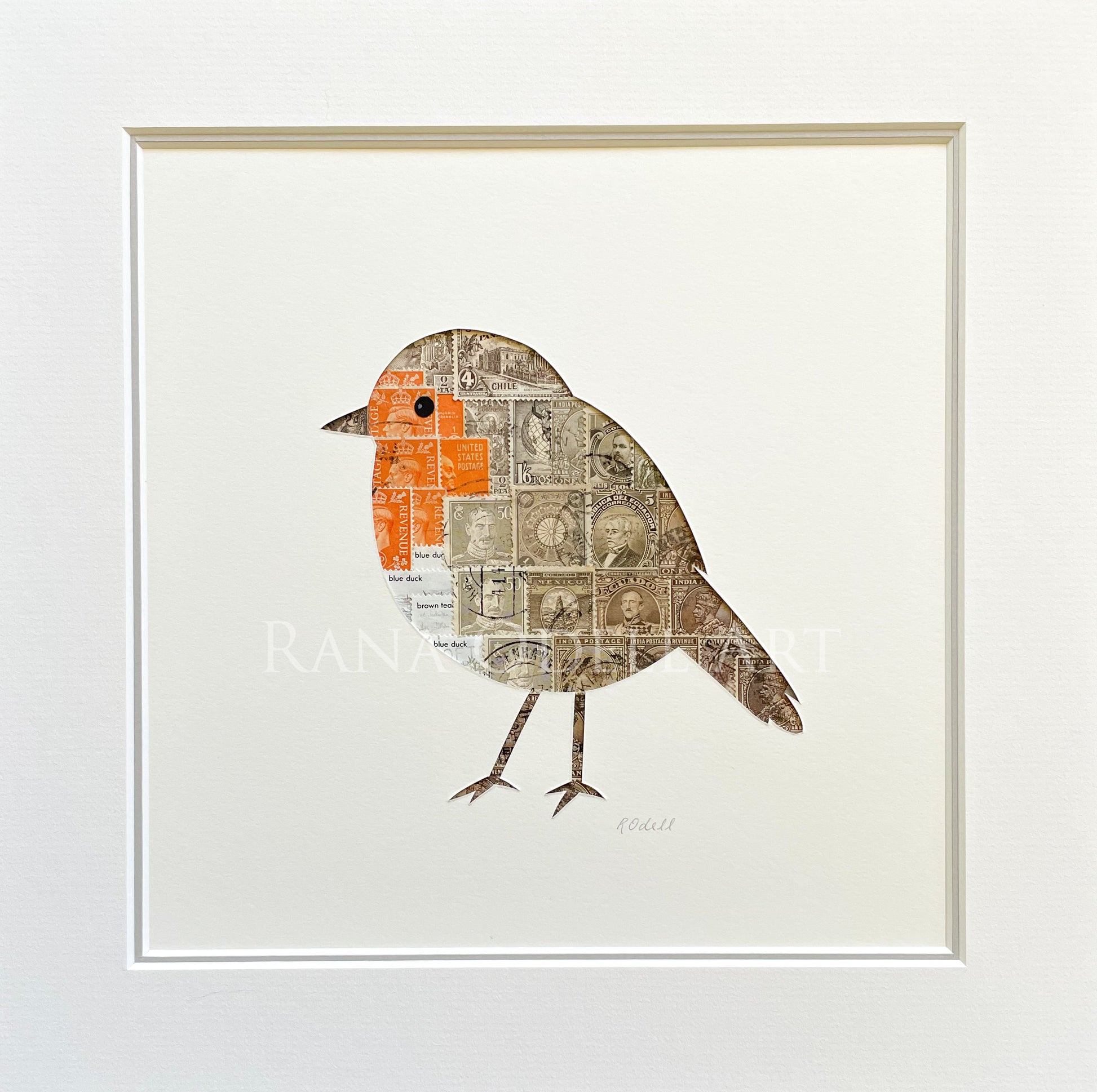 Made from postage stamps from around the world. This piece was 25x25cm.