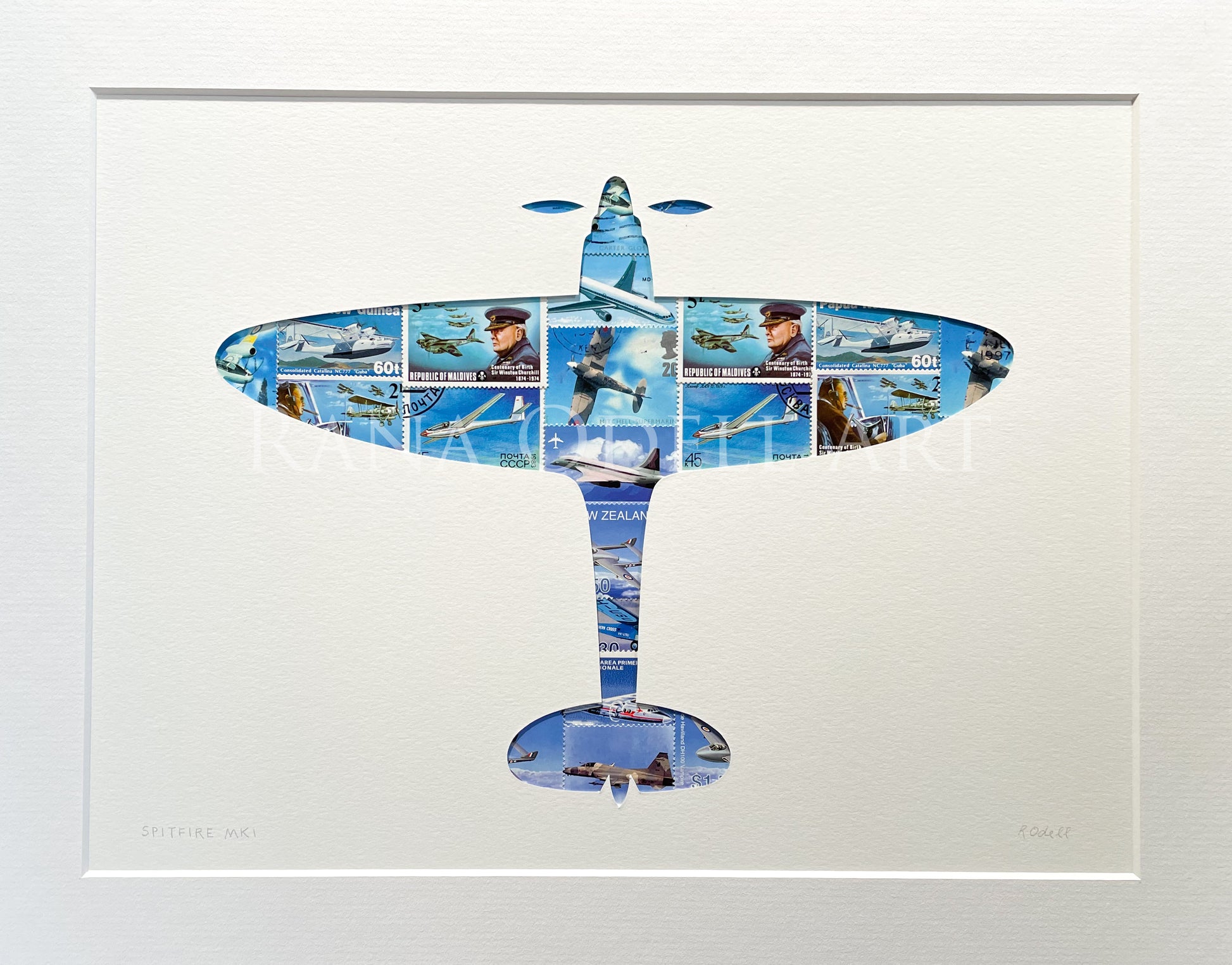 Created from real postage stamps featuring planes. Stamps originate from around the world. The artwork includes the white mat border shown in the image. Arrives unframed in a cellophane packet with protective backing. Will fit an 11x14 inch frame.