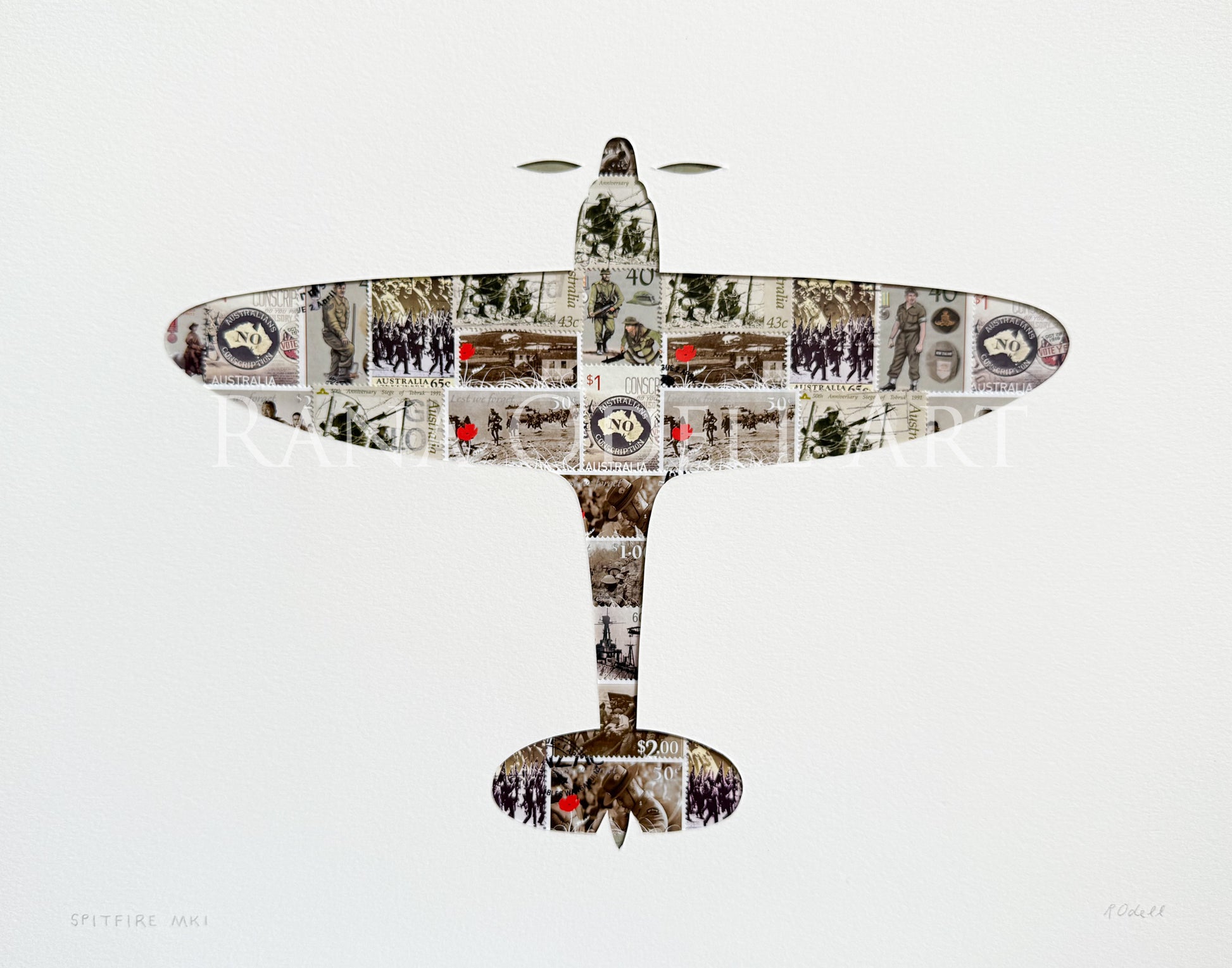 Created from real postage stamps featuring defence force themes. Stamps originate from New Zealand and Australia. Artwork arrives unframed in a cellophane packet with protective backing. Will fit an 11x14 inch frame.