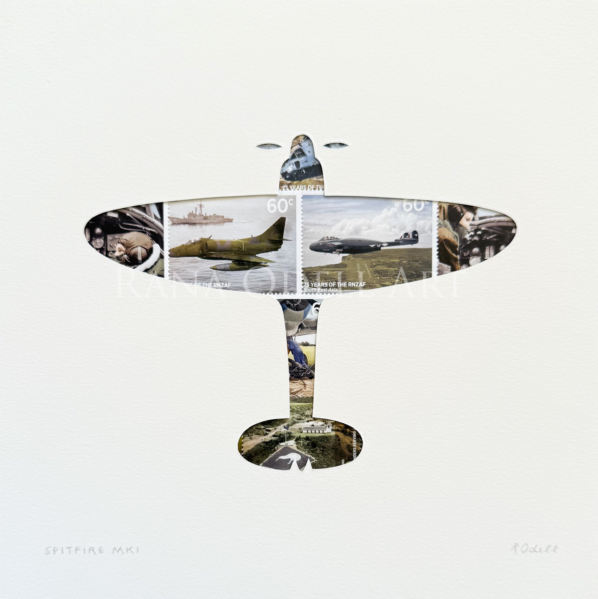 Spitfire Mk1 - NZ stamps, 8x8 inches