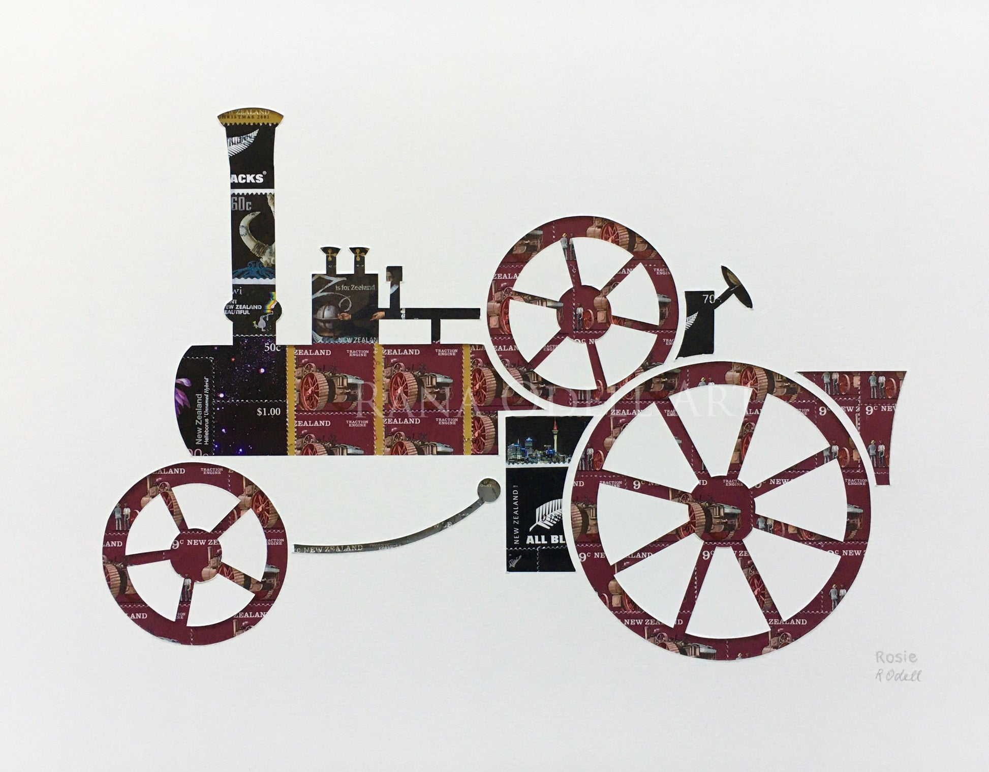 A commissioned artwork made entirely from New Zealand postage stamps. This piece was 11x14 inches.