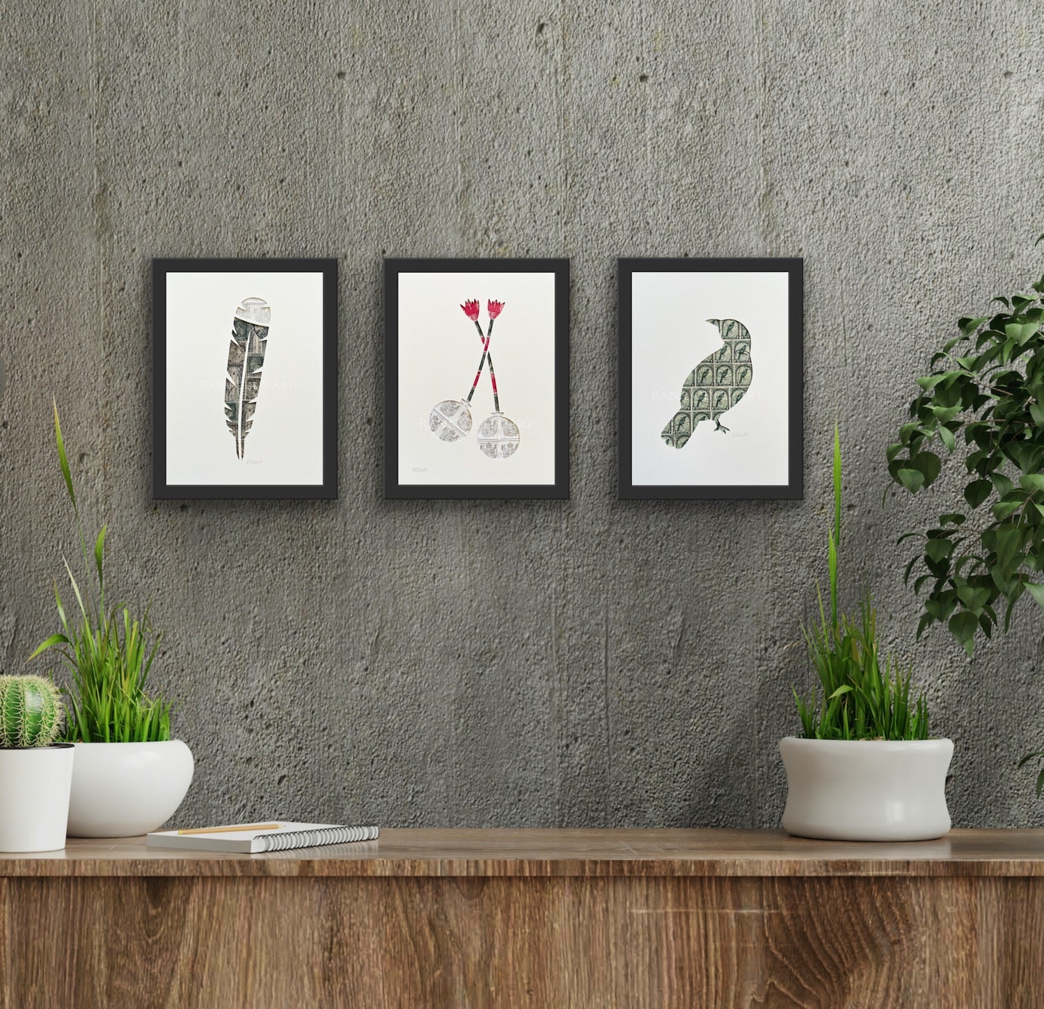 The third, fourth and fifth images illustrate how the artwork might look once framed and hung.