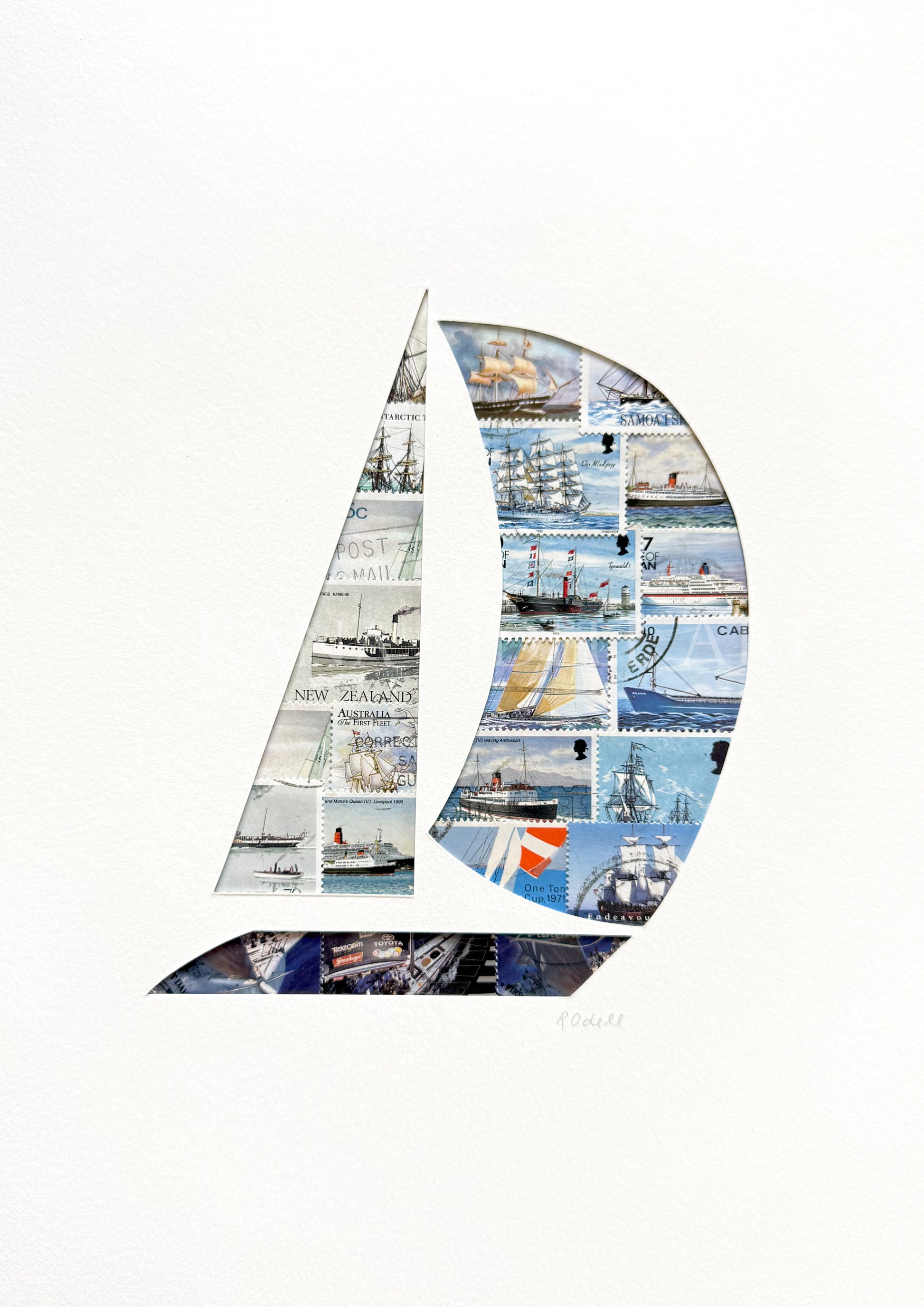 Created from real postage stamps featuring boats/yachts. Stamps originate from around the world. Artwork arrives unframed in a cellophane packet with protective backing. Artwork will fit an A4 size frame.